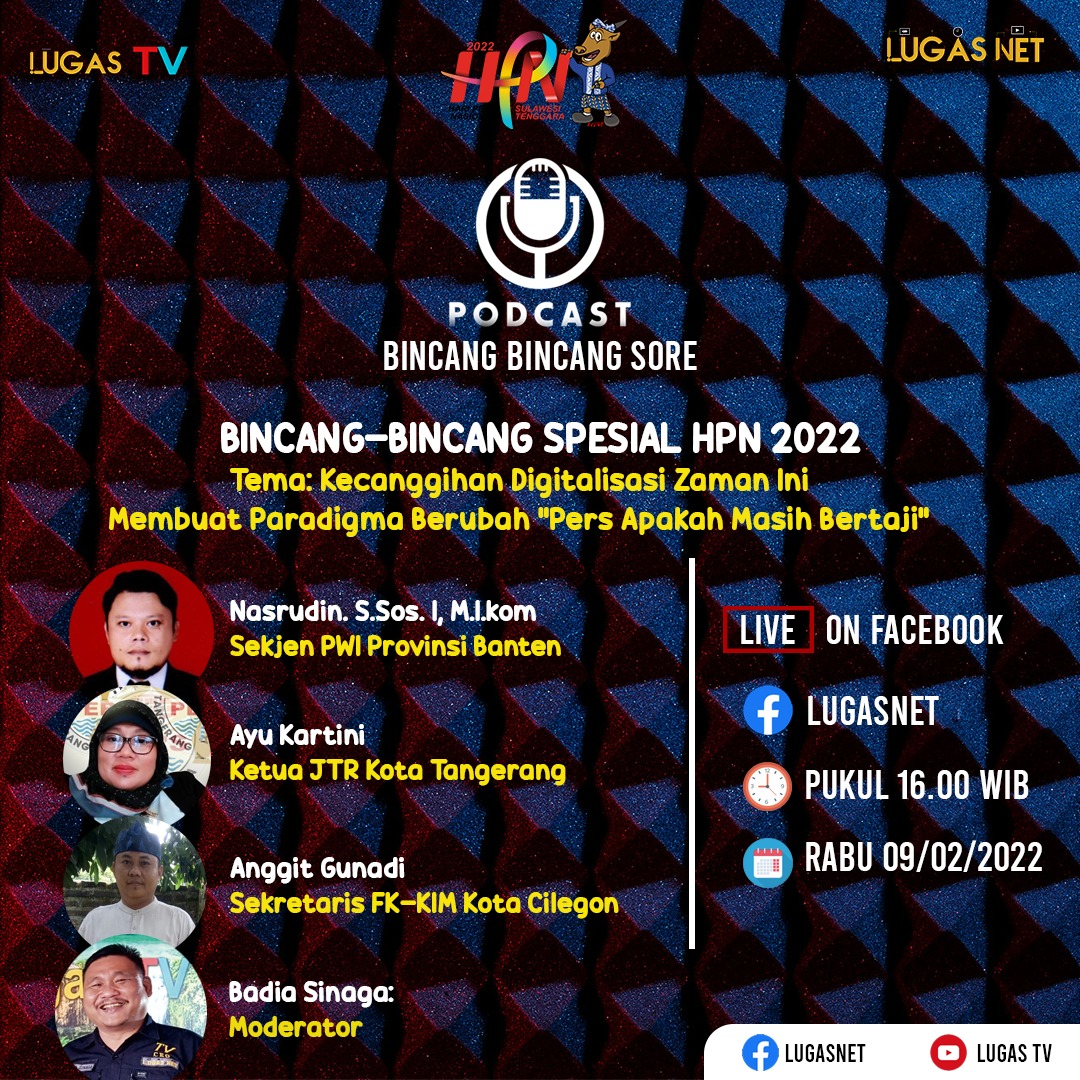 Media lugas.net dibawah perusahaan PT.Lugas Multimedia Nusantara dalam momen HPN tahun 2022 menggelar diskusi publik, dimana untuk menyampaikan ke publik sejauh apa tantangan pers di era digital saat ini, dimana harus dapat mengikuti perubahan paradigma baik secara langsung maupun tidak langsung.