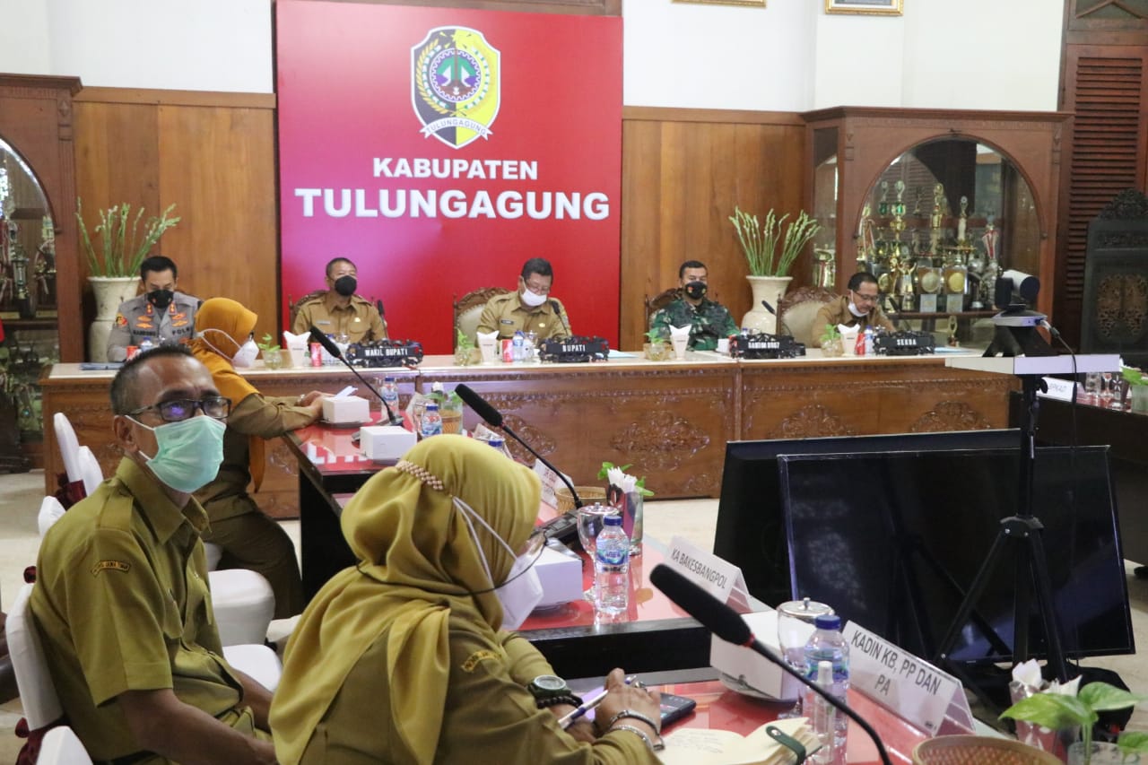 SULUHNEWS.ID, TULUNGAGUNG – Koamndan Kodim 0807/Tulungagung Letkol Inf Yoki Malinton Kurniafari, S.H., M.Tr (Han)., M.I.Pol bersama Forkopimda Tulungagung menerima arahan Ir. H Joko Widodo (Presiden RI) kepada Kepala Daerah secara Virtual melalui Zoom Meeting di Pendopo Kongas Arum Kusumaning Bongso Jl. Kartini No 7 Kelurahan Kampungdalem Kecamatan Tulungagung Kabupaten Tulungagung Jawa Timur, Senin (07/02/2022).