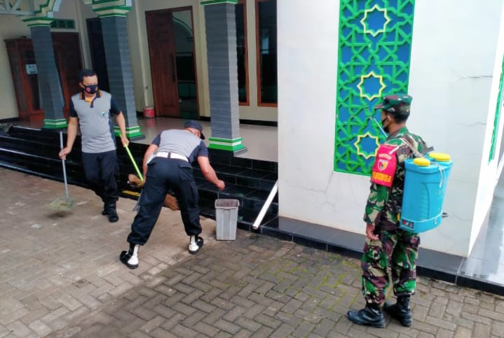Untuk meminimalisir berkembang dan menyebar nya Virus Covid 19 pada hari ini Anggota Koramil 09/Kendal Serma Marjuki dan dua orang anggota lainnya bersama Bhabinkamtibmas melaksanakan giat penyemprotan disinfektan di tempat ibadah Mushola Al Falah Desa Sidorejo Kecamatan Kendal.