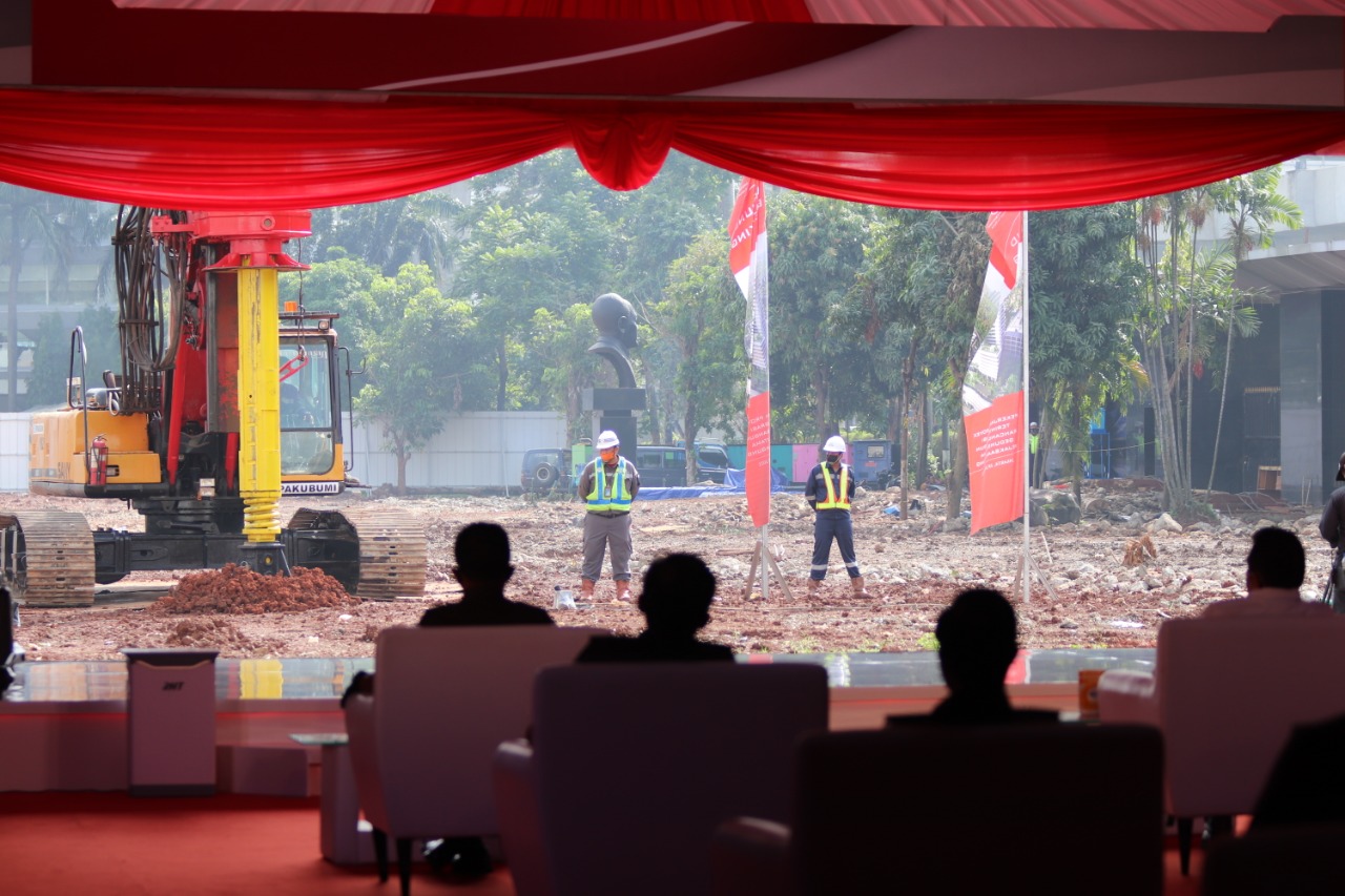 SULUHNEWS.ID, JAKARTA – Jaksa Agung Dr. Burhanuddin, SH. MH. didamping oleh Wakil Jaksa Agung, Setia Untung Arimuladi SH. M.Hum, Para Jaksa Agung Muda, Kepala Badan Diklat dan Para Staf Ahli Jaksa Agung serta Ketua Komisi Kejaksaan Republik Indonesia, meresmikan dimulainya (Groundbreaking) Pekerjaan Proyek Terintegrasi Rancang Bangun Gedung Utama Kejaksaan Agung yang telah terbakar pada 22 Agustus 2020 yang lalu.