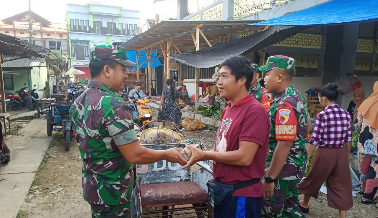 Dalam suasana yang penuh kegembiraan dan kepedulian, para anggota Koramil dengan sigap membagikan nasi bungkus kepada tukang becak yang sedang beristirahat dan pelaku pasar yang tengah beraktivitas. Mereka tidak hanya memberikan makanan, tetapi juga senyuman dan semangat yang menghangatkan hati para penerima.