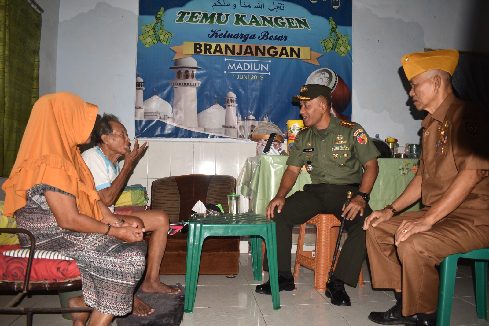 Tak hanya membantu, kehadiran Danrem 081/DSJ Kolonel Inf H. Sugiyono yang terkenal humoris juga mampu menghibur Soewarto yang tengah didampingi istrinya.