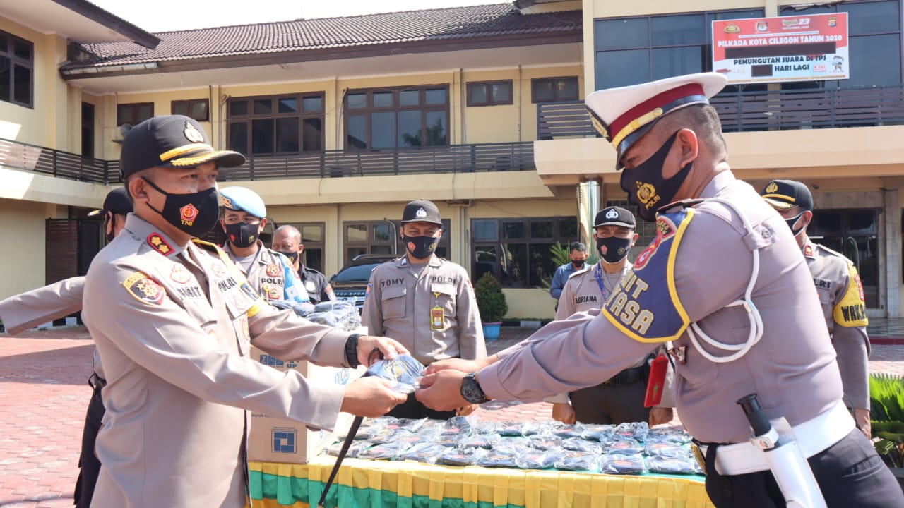 Dalam sambutannya Kapolres Cilegon AKBP Sigit Haryono SIk SH mengatakan kepada seluruh personil Polres Cilegon yang terlibat oprasi harus menggunakan masker dimana saat ini situasi global sedang mengalamai pandemi Covid-19