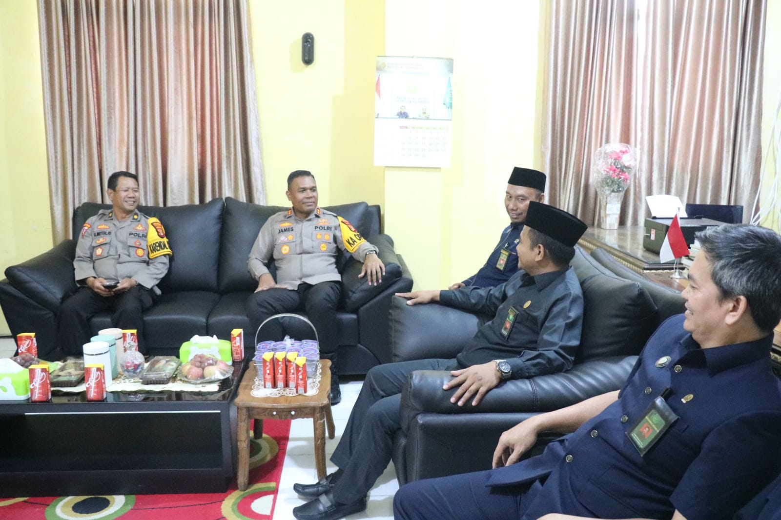 SULUHNEWS.ID,TULANG BAWANG – Kapolres Tulang Bawang, Polda Lampung, AKBP James H Hutajulu, SIK, SH, MH, MIK, bersama Pejabat Utama (PJU) Polres, dan Kapolsek Menggala menyambangi kantor Pengadilan Agama (PA) Tulang Bawang, di Kelurahan Menggala Selatan, Kecamatan Menggala, Kabupaten Tulang Bawang, Selasa (23/01/2024) sore.