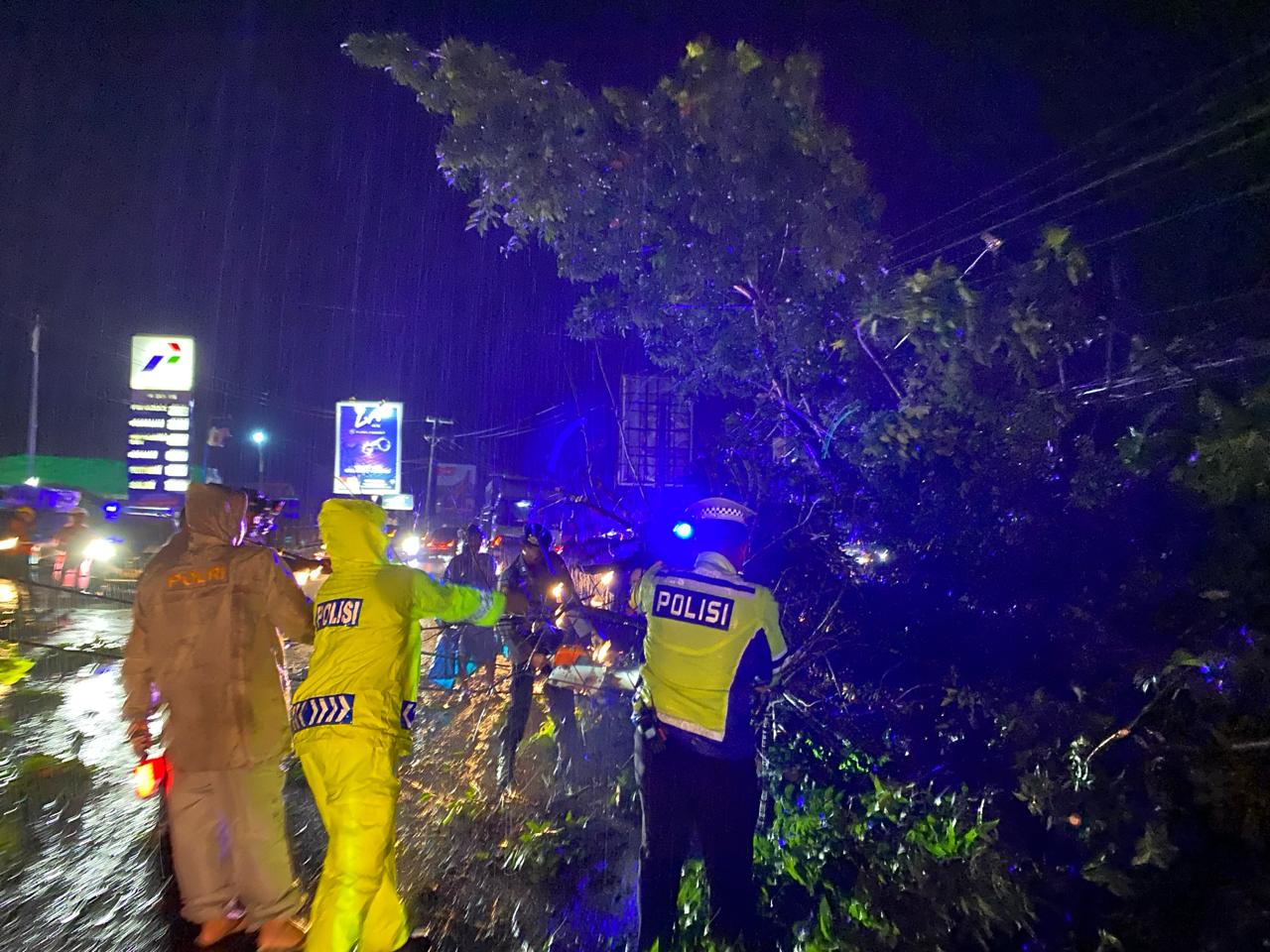 SULUHNEWS.ID,TULANG BAWANG – Polres Tulang Bawang, Polda Lampung, melakukan quick respons (respon cepat) atas peristiwa pohon besar tumbang yang menutupi jalan yang diakibatkan oleh hujan deras.