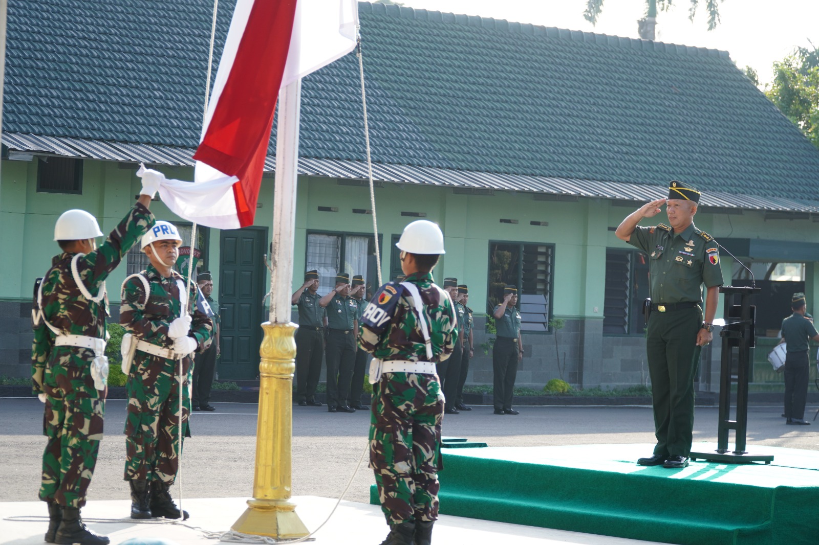 (Madiun, – Guna mewujudkan rasa hormat kepada bendera merah putih serta rasa cinta kepada tanah air, Bangsa dan Negara, Korem 081/DSJ melaksanakan Upacara bendera setiap hari Senin yang bertempat di Halaman Makorem, Jl. Pahlawan No. 50 Kota Madiun, Jawa Timur, Senin (26/06/23).