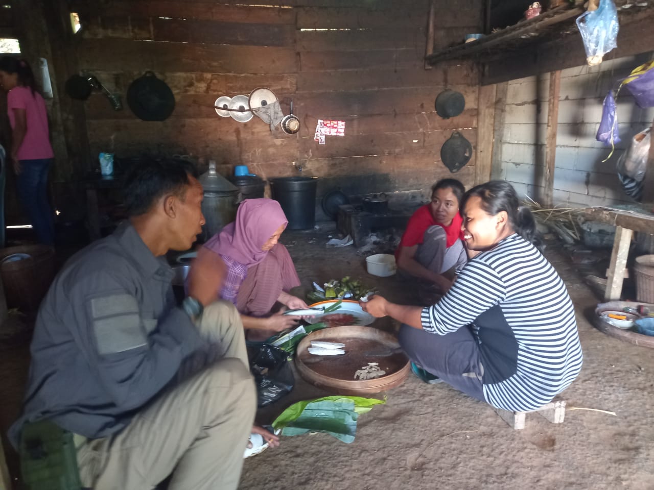Saat berkunjung ke rumah warga yang saat itu sedang asyik memasak makanan untuk warga yang membantu kegiatan TMMD ke 113, Tim Jurpen disambut dengan ramah tamah dan penuh kekeluargaan.