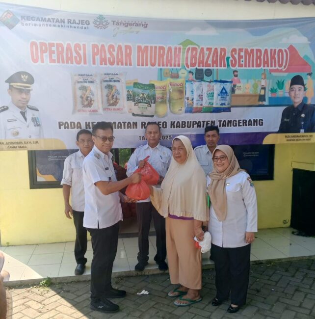 SULUHNEWS.ID, KAB.TANGERANG – Untuk mengendalian inflas terutama untuk masyarakat kurang mampu di wilayah Kecamatan Rajeg Tangerang dan menjelang Hari Raya Idul Adha Kecamatan Rajeg menggelar Operasi Pasar Murah (Bazar Sembako), bertempat dihalaman Kantor Kecamatan Rajeg, Rabu (28/05/2025).