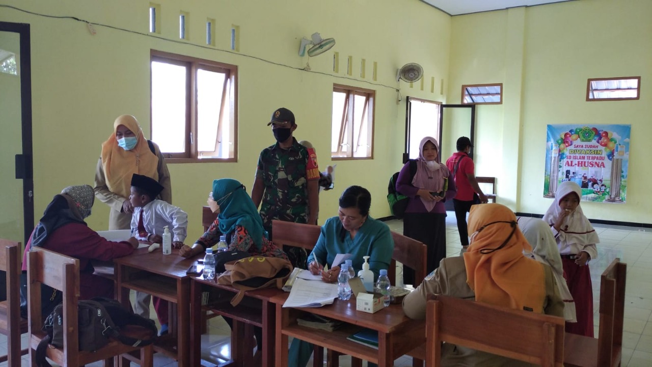 Terus kejar target vaksinasi anak di wilayah Tulungagung khususnya Desa Wonokromo, Koptu Sony Kristiawan intens memantau secara langsung kegiatan vaksinasi demi menyukseskan program pemerintah untuk memenuhi target 26,5 juta anak usia 6-11 tahun yang akan mendapatkan suntikan vaksin.