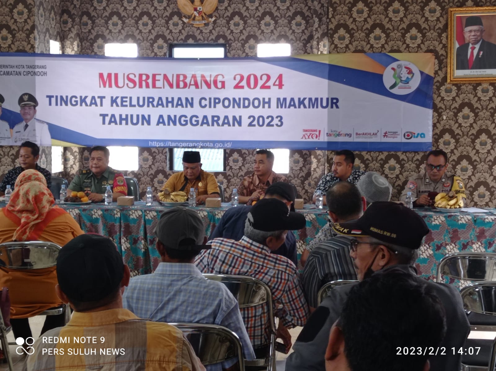 SULUHNEWS.ID, KOTA TANGERANG – Musyawarah Perencanaan Pembangunan (Musrenbang)Kelurahan Cipondoh Makmur kecamatan Cipondoh Kota Tangerang ,adalah forum musyawarah tahunan yang di laksanakan oleh para pemangku kepentingan (stakeholders) tingkat kelurahan dalam rangka membahas dan menyepakati hasil-hasil rempug warga untuk menjadi usulan kegiatan prioritas di wilayah Kelurahan yang akan di sampaikan ke Musrenbang Kecamatan sebagai bahan penyusunan rencana kegiatan pembangunan tahun berikutnya. Musrenbang di adakan di Gedung Aula Kantor Kelurahan Cipondoh Makmur Kota Tangerang ,Kamis (02/02/2023).