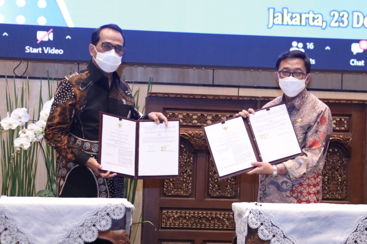 SULUHNEWS.ID, JAKARTA – Menteri Dalam Negeri (Mendagri) yang diwakili Sekretaris Jenderal (Sekjen) Kemendagri Muhammad Hudori bersama Menteri Perhubungan (Menhub) Budi Karya Sumadi menandatangani kesepakatan bersama tentang dukungan pelaksanaan tugas dan fungsi Kemendagri dan Kemenhub. Acara dilangsungkan di Kantor Kemendagri, Jakarta, Rabu (23/12/20).