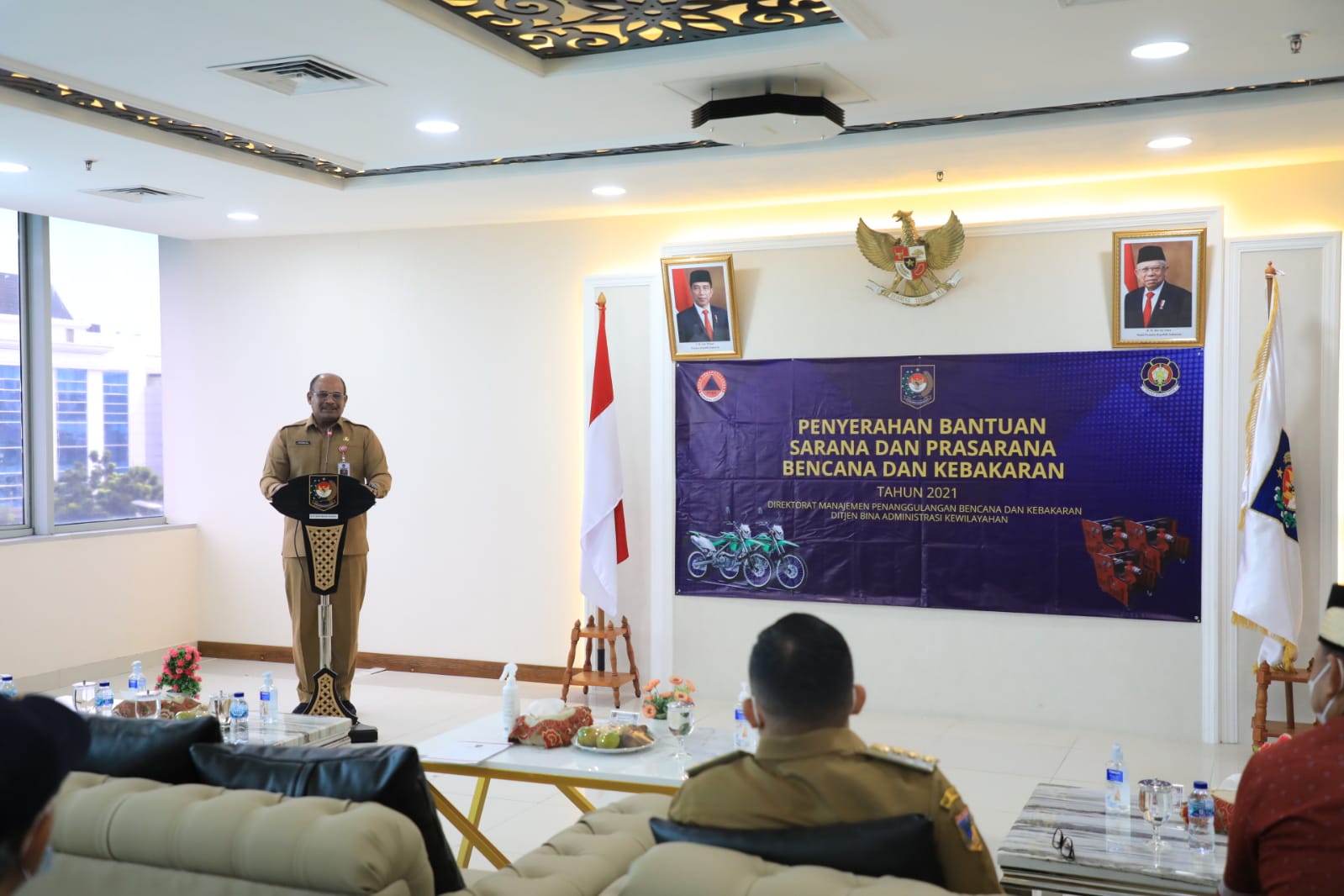 Demikian disampaikan Direktur Jenderal (Dirjen) Bina Administrasi Kewilayahan (Adwil) Kemendagri Safrizal ZA., saat menyerahkan bantuan pemerintah (banper) kepada sembilan pemerintah kabupaten/kota untuk mendukung pelaksanaan sub urusan bencana dan delapan pemerintah kabupaten/kota untuk mendukung sub urusan kebakaran, di Gedung H Kantor Kemendagri, Jakarta Pusat, Senin (10/1/2022).