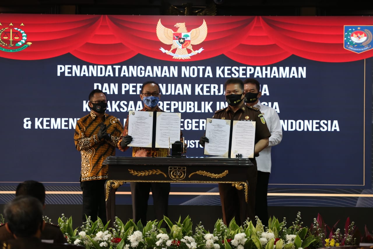 Suluhnews.id, Jakarta – Kementerian Dalam Negeri (Kemendagri) melakukan Penandatanganan Nota Kesepahaman Antara Kemendagri dan Kejaksaan Agung terkait Pembaharuan PKS Pemanfaatan Data Kependudukan dalam Rangka Penegakan Hukum. Penandatanganan dilakukan di Sasana Pradana Kejaksaan Agung, Jakarta, Kamis (6/08/2020).