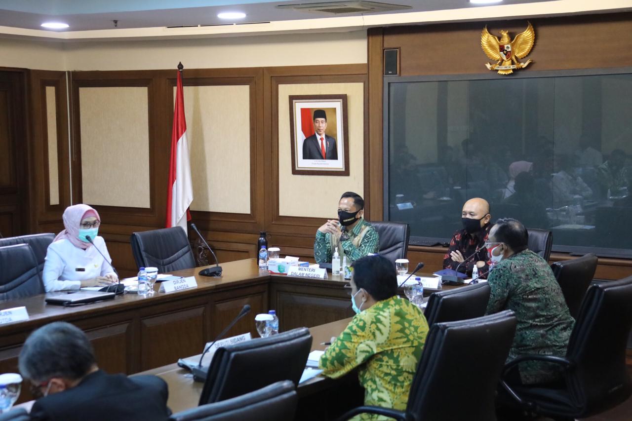 “Ada 2 topik yang akan kita bahas, yaitu yang pertama masalah sosialisasi dan diseminasi secara lebih masif protokol kesehatan terkait dengan masalah Covid-19. Kemudian yang kedua nanti mengenai masalah realisasi anggaran sekaligus juga mengenai percepatan dan dukungan Pemerintah Pusat,” ujar Mendagri Tito saat membuka Rapat Koordinasi Pencapaian Target Realisasi APBD 2020 dan Sosialisasi Penggunaan Masker, Cuci Tangan, serta Jaga Jarak untuk Perubahan Perilaku Baru Masa Pandemi Covid-19 melalui Video Conference di SBP Kemendagri, kemarin.