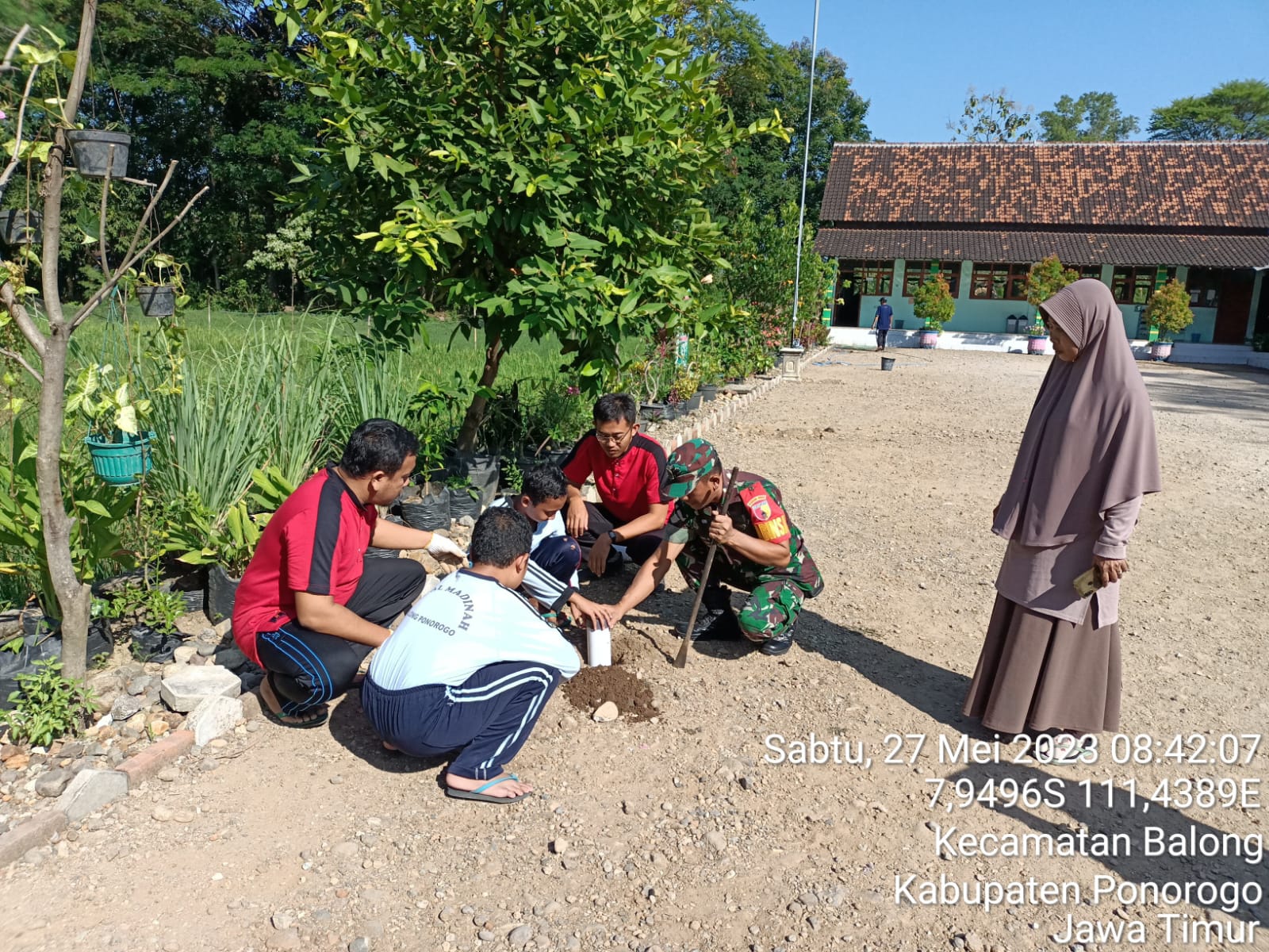 SULUHNEWS.ID, PONOROGO – Serka Supriyono, anggota Koramil Tipe B 0802/09 Balong, Kodim 0802/Ponorogo yang bertugas menjadi Babinsa Balong ditemani satu anggota Koramil Tipe B 0802/09 Balong kemarin hari Sabtu (27/05/2023) melaksanakan kerja bakti di MIT Al Madinah, Kecamatan Balong, Kabupaten Ponorogo, Minggu (28/05/2023).