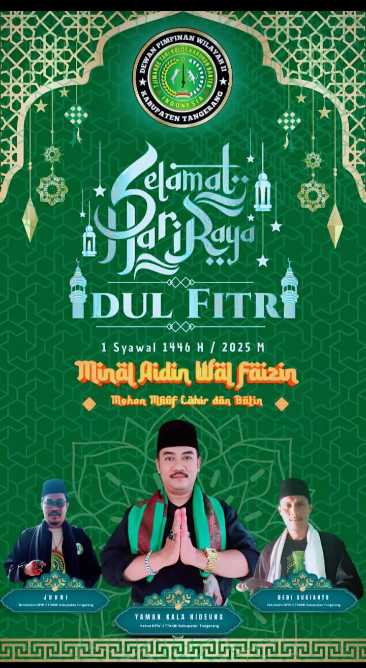 SULUHNEWS.ID, KABUPATEN TANGERANG – Dalam rangka menyambut Hari Raya Idul Fitri 1446 H, Ketua Yaman Kala Hideung PPBNI Satria Banten Kecamatan Kemiri, dengan tulus mengucapkan “Selamat Hari Raya Idul Fitri 1446 H. Minal Aidzin Walfaidzin, Mohon Maaf Lahir dan Batin,” Senin 31/03/2025.