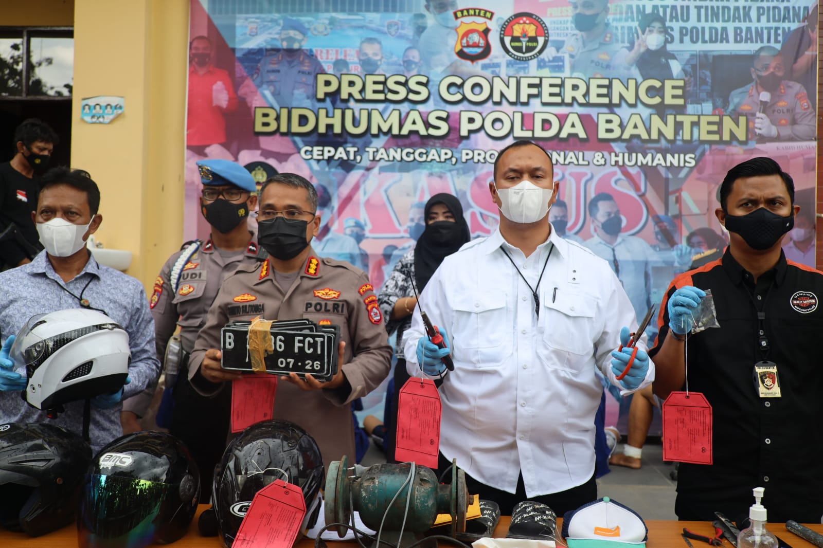 Dalam penyampaiannya Kabid Humas Polda Banten Kombes Pol Shinto Silitonga mengatakan bahwa Polda Banten melakukan penangkapan jaringan pelaku kejahatan jalanan dengan menangkap 5 tersangka, “Ditreskrimum Polda Banten Pada Rabu 29 Desember 2021 berhasil menangkap 5 orang tersangka pelaku yang terlibat dalam kasus begal, curas jalanan, dan curat, para pelaku melakukan kejahatan dengan modus yang sama dan sudah beraksi 10 kali,” kata Shinto Silitonga.