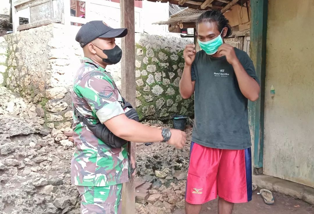 “Meski dalam aktivitas apapun harus tetap pakai masker, itu penting jangan tidak pakai masker, karena pandemi ini belum usai,” imbuh Babinsa pada saat pembagian masker kepada warganya.