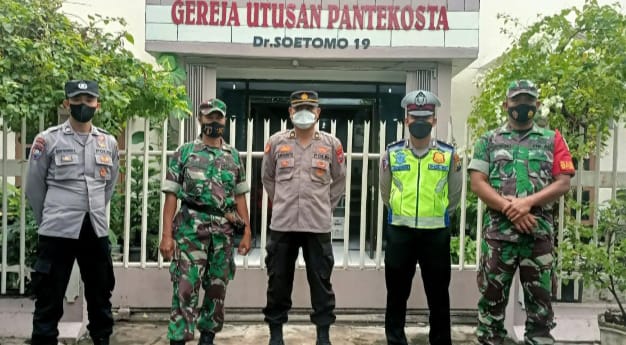 Selain melaksanakan pengamanan anggota Koramil 01/Ngawi juga menghimbau jemaat untuk menerapkan protokol kesehatan terutama penggunaan masker.