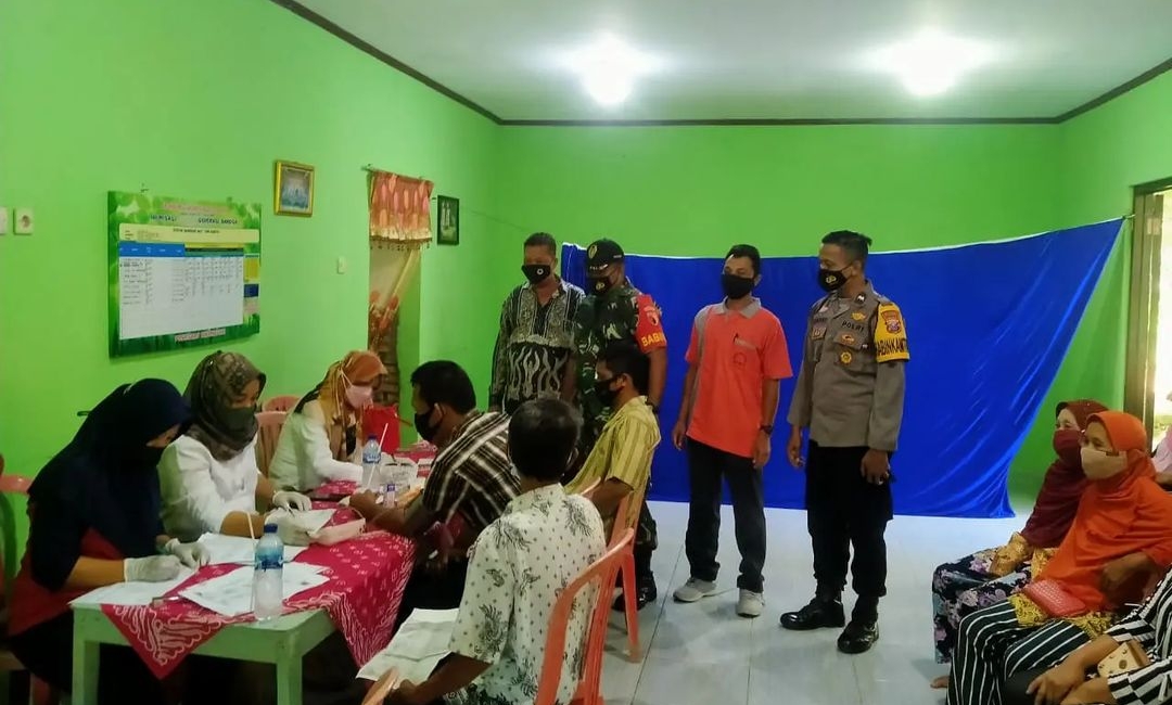 Pada kesempatan tersebut, Babinsa dan Bhabinkamtibmas memantau langsung pelaksanaan pemberian Vaksin Covid -19. Sebelum divaksin, para penerima vaksin melaksanakan beberapa proses diantaranya, terlebih dahulu melaksanakan pendaftaran, dilanjutkan dengan pemeriksaan screening, kemudian dilakukan penyuntikan vaksin.