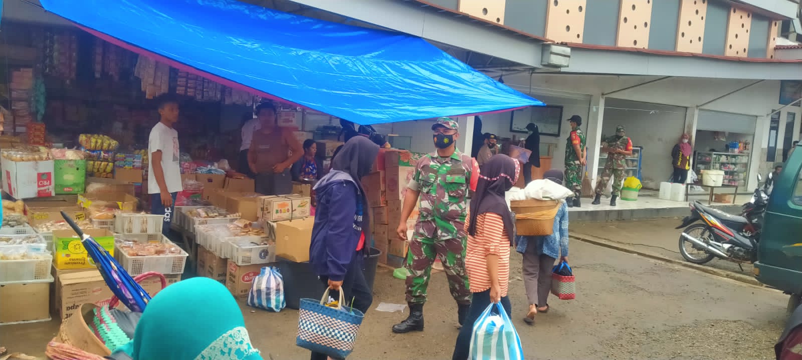 Kali ini Babinsa Koramil 0801/11 Donorojo Kodim 0801 Pacitan bersama Babinkamtibmas Polsek Donorojo terus ingatkan warga tentang pelaksanaan pendisiplinan pelaksanaan Prokes kepada para pedagang dan pengunjung pasar di desa Donorojo Kecamatan Donorojo Kabupaten Pacitan. Minggu (09/01/2021).