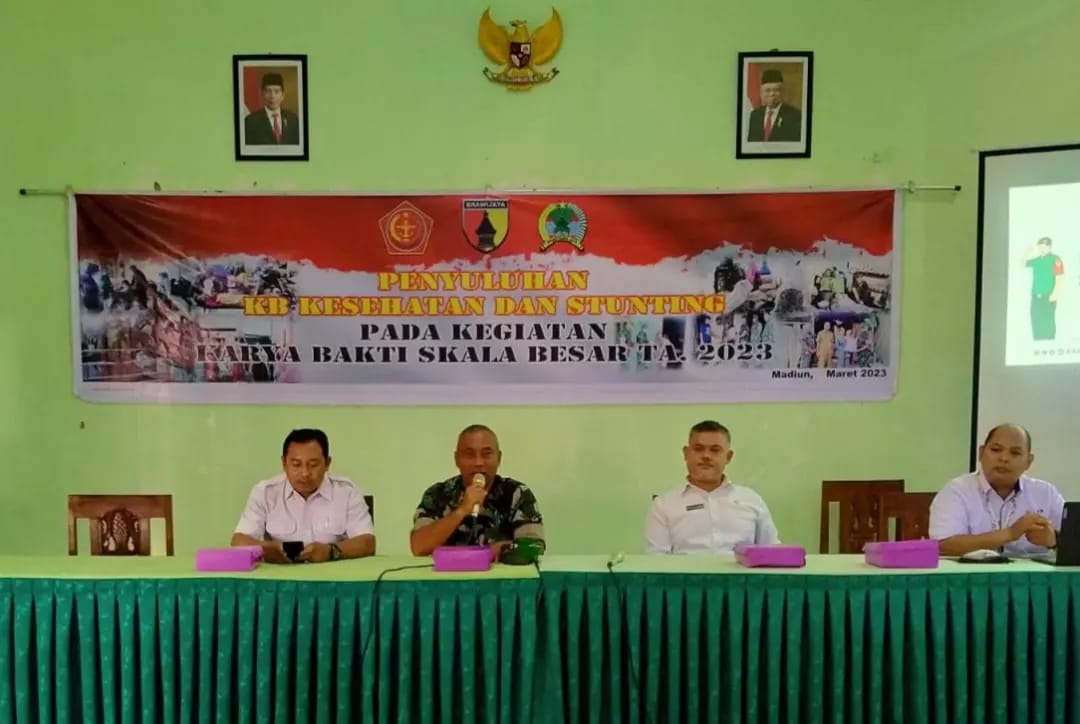 SULUHNEWS.ID, MADIUN – Kepada masyarakat Desa Garon yang menjadi lokasi diselenggarakannya Karya Bakti (Karbak) Skala Besar Mabes TNI TA 2023, Totok Wuriana dari Dinas Pengendalian Penduduk dan KB, PP dan PA Kabupaten Madiun menjelaskan tentang masalah stunting yang saat ini masih banyak dialami oleh anak-anak di Indonesia.
