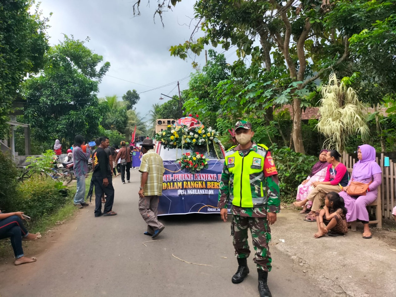 Guna mendukung kelancaran kegiatan Bersih Desa Ngulankulon, Babinsa Ngulankulon Serda Agus Trianto anggota Koramil 0806/02 Pogalan pun turut terjun kawal kegiatan pawai keliling yang dilakukan oleh masyarakat Desa Ngulankulon.