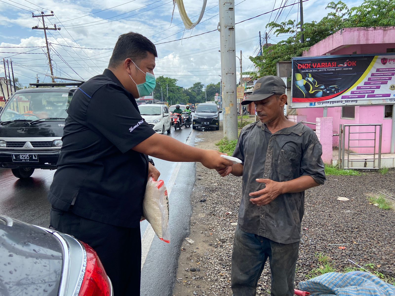 SULUHNEWS.ID, SERANG.- Sebagai bentuk kepedulian Polri kepada masyarakat ditengah situasi pandemi Covid-19, Bidhumas Polda Banten melaksanakan bantuan sosial dalam rangka Jumat Barokah dengan cara membagikan puluhan paket beras dan masker kepada para pemulung, tukang parkir, tukang becak, tukang ojeg pangkalan serta pengemis di sepanjang jalan Kota Serang pada Jumat (28/01).
