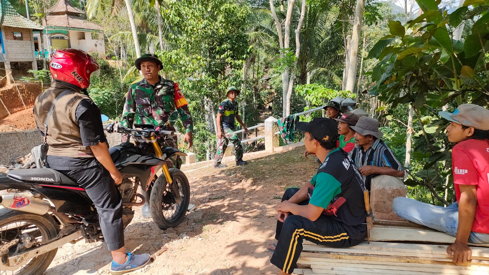 SULUHNEWS.ID, PACITAN – Waktu istirahat menjadi momen berharga bagi anggota Kodim 0801/Pacitan pada pelaksanaan program Pra TMMD ke – 117 Tahun 2023 untuk menjalin kedekatan bersama masyarakat di Desa Ketroharjo, Kec. Tulakan, Kab. Pacitan, Kamis (01/06/2023).