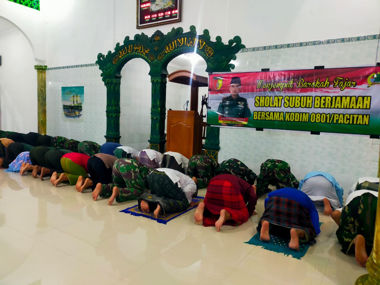 “ketika kita menjalankan sholat subuh berjamaah di masjid, selain untuk menjemput barokah pagi, apa yang kita kerjakan akan disaksikan oleh para malaikat dan mendapatkan keutamaan sholat sepanjang malam”, kata Dandim saat memberikan arahannya.