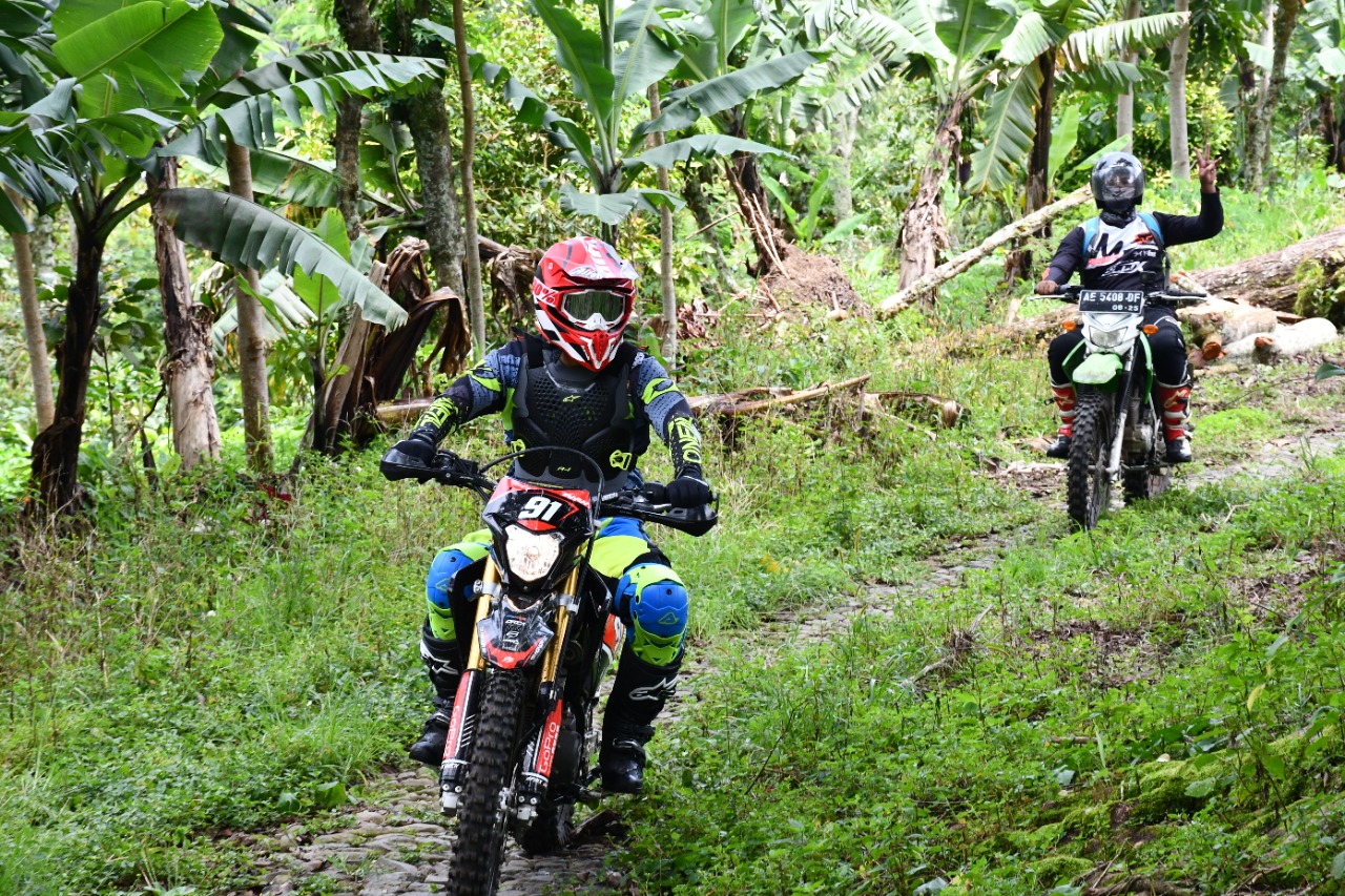 SULUHNEWS.ID, MADIUN – Dengan menggunakan motor trail kesayangannya bernomor 91, Danrem 081/DSJ Kolonel Inf Waris Ari Nugroho ngetrail bareng Bupati Madiun, Ahmad Dawami.
