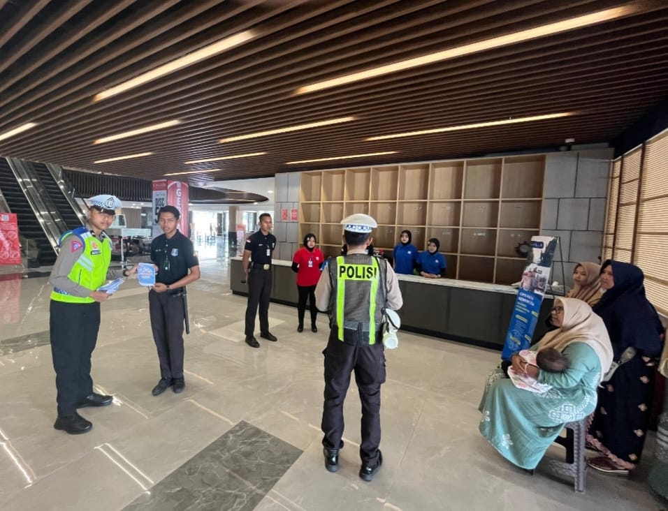 Kepada pengunjung di pusat perbelanjaan, petugas menghimbau agar menjadikan tertib berlalulintas sebagai budaya.