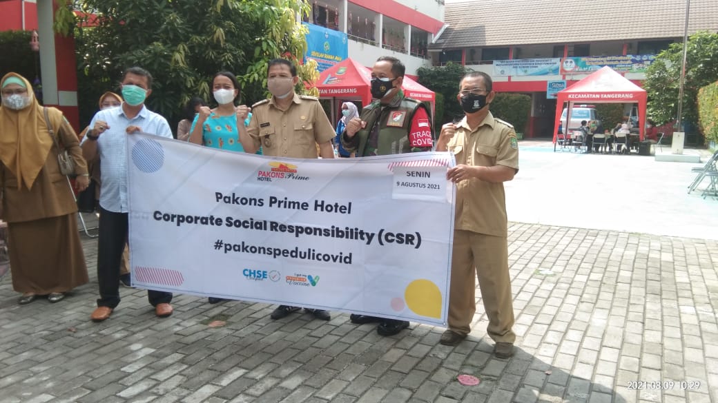 Julia HR. Manager Pakons Prime Hotel mengungkapkan, Alhamdulillah kami dari pakons berikan nasi kotak sebanyak 50 boks kepada team medis yang sedang menyelenggarakan Vaksin. Dan kami berharap virus corona ini cepat berlalu.” Ungkapnya.