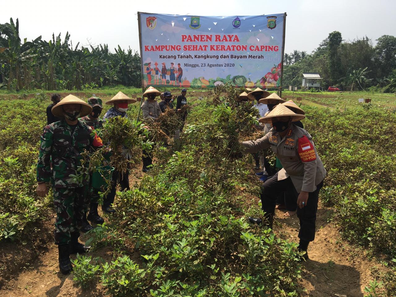 “Panen hari ini di kampung sehat keraton caping merupakan hasil dari program ketahanan pangan yang digagas Polri dan TNI bekerja sama dengan pengelola Banksasuci memanfaatkan lahan tidur dengan menaman berbagai jenis tanaman sayur mayur maupun membudidayakan ikan,” terang Kapolres.
