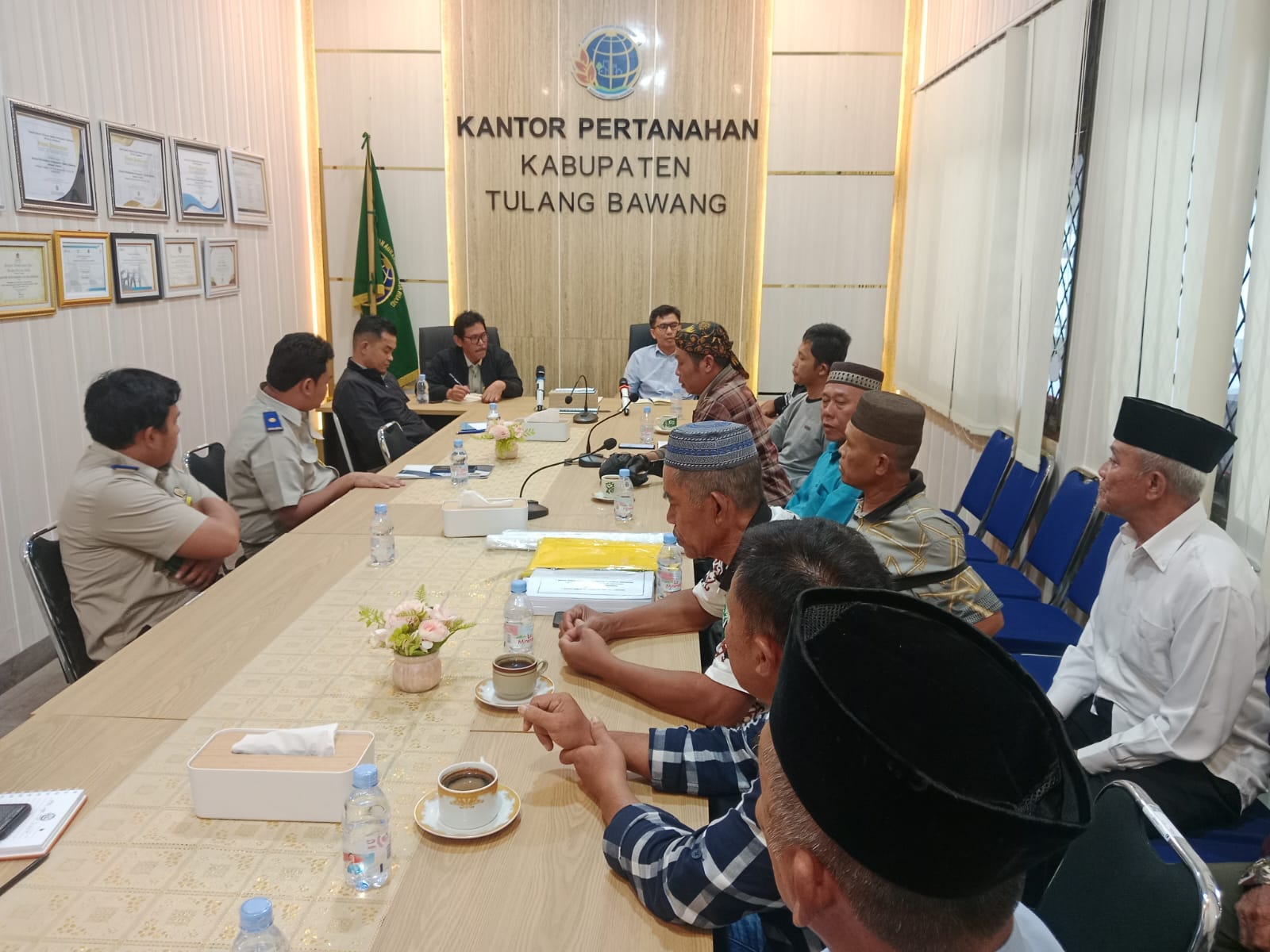 Kegiatan tersebut dilaksanakan di ruang rapat kantor Pertanahan ATR/BPN Kab. Tulang Bawang, dengan kepala BPN, Amin Marzuki dan kepala bidang lainnya.