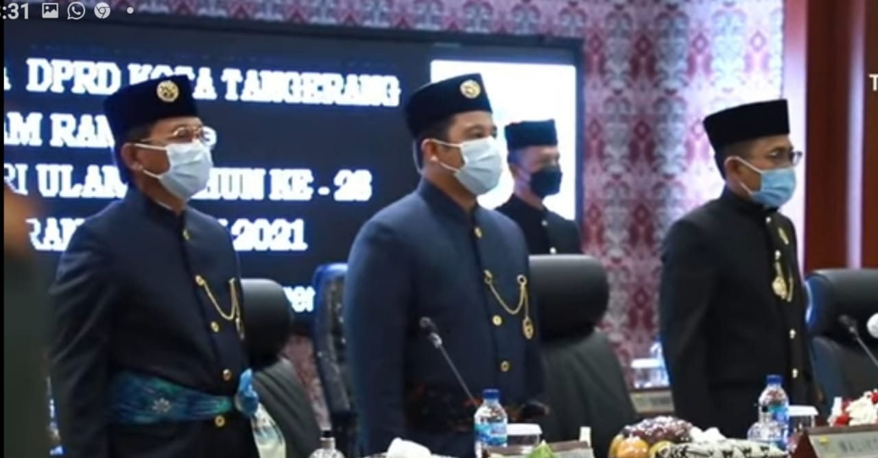 pada hari kesempatan siang hari ini kita dapat berkumpul bersama dalam rangka HUT Kota Tangerang ke 28 Tahun 2021, kami atas nama masyarakat Kota Tangerang Selamat Dirgahayu Kota Tangerang.DPRD kota Tangerang bertekad dengan bersungguh- sungguh sesuai dengan amanat UUD 1945, diusia yang ke 28 tahun sudah kita lalui baik suka maupun duka itu merupakan sebagi koreksi dan introfeksi di masa pademi ini kami Pemerintah Kota Tangerang menghimbau untuk memutus mata rantai covid 19. ”
