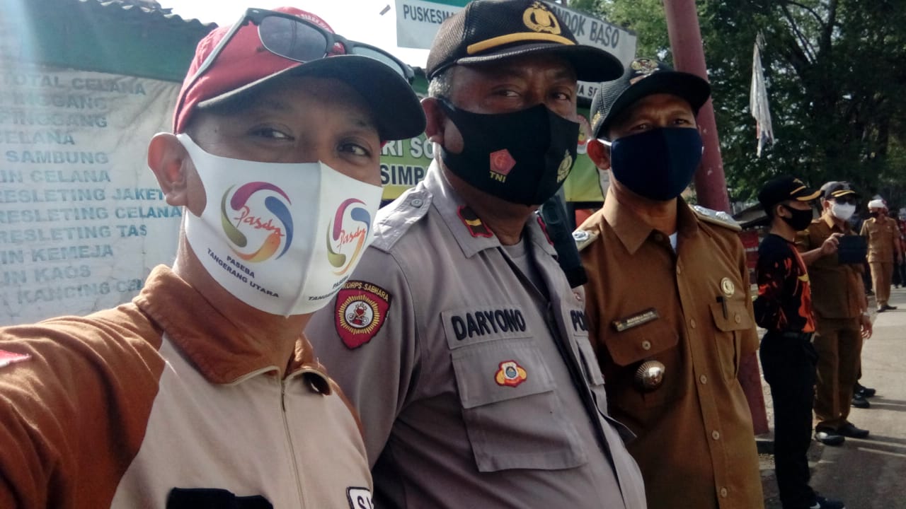 SULUHNEWS.ID, KAB-TANGERANG – Demi memutus mata rantai Covid 19 menjalankan peraturan Protokol Kesehatan diwilayah Tangerang Utara Kabupaten Tangerang perkumpulan dari Paseba kembali beraksi dalam operasi masker bersama Lurah Pisangan Jaya Kecamatan Sepatan Hotib Balok, Babinsa Sepatan dan Polsek Sepatan untuk melakukan Sosialisasi Protokol Kesehatan. Dari pengurus Paseba Tangerang Utara diwakili Wasekjen Paseba Kang Bobby 007 betsama kang Eben kartawijaya, Guru Rico dan Bunda Linda kanjeng Ratu Paseba. Lurah Pisangan Jaya M. Hotib mengharapkan, dengan kegiatan ini dapat mengingatkan akan pentingnya protokol kesehatan,”Mari kita patauhi apa yang sudah ditetapkan tentang protokol Kesehatan dari Bupati Tangerang ,”tutur Lurah Hotib.