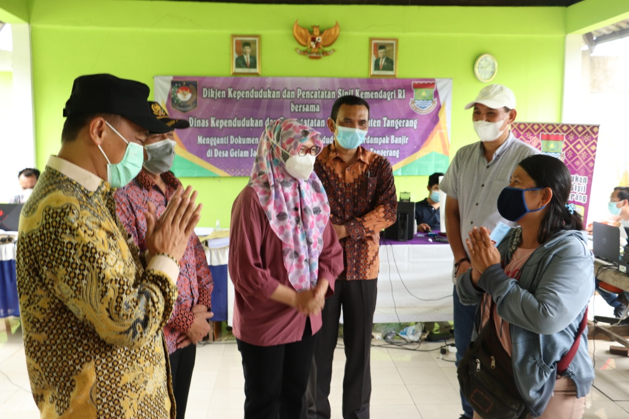 Zudan mewakili Kemendagri berterima kasih atas aksi cepat tanggap kepada Dinas Dukcapil Kabupaten Tangerang yang dapat dengan cepat menyelesaikan dokumen kependudukan di Desa Gelam Jaya.