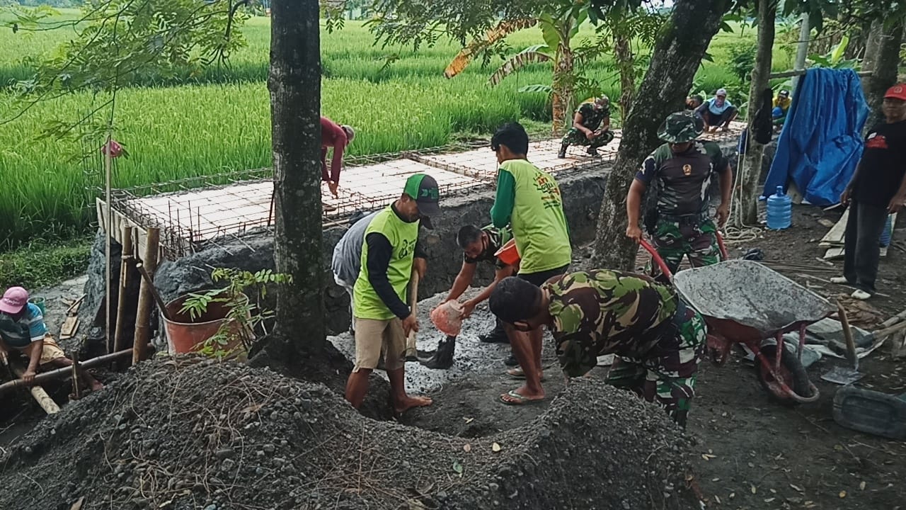 “Saya bersama Instansi terkait selalu bersama sama untuk hadir di setiap kegiatan warga masyarakat untuk memberikan solusi setiap kegiatan,kali ini dengan membangun jembatan warga yang merupakan akses ke persawahan sehingga supaya warga bisa membawa hasil panennya kerumah dengan tidak berjalan kaki,dengan adanya jembatan ini semoga menjadi bermanfaat” ujar Babinsa.