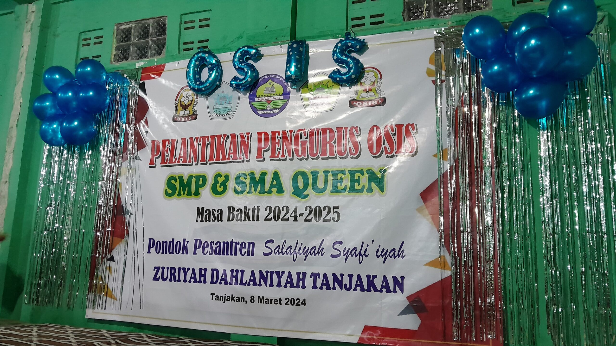 SULUHNEWS.ID, KABUPATEN TANGERANG – Pondok Pesantren Salafiyah Syafi’iyah Zuriyah Dahlaniyah Tanjakan Sekaligus pendidikan SMP Dan SMA QUEEN Mengadakan acara pelantikan pengurus ketua OSIS SMP Dan SMA QUEEN masa bakti 2024-2025 yang bertempat di depan aula pondok pesantren. Acara berlangsung lancar dan meriah. Jumat 08/03/2024.