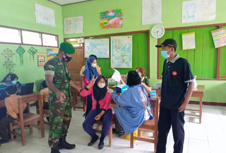 SULUHNEWS.ID, NGAWI – Anggota Posramil Kasreman Kodim 0805/Ngawi Pelda Hariyanto melaksanakan monitoring dan pendampingan pelaksanaan jalanya Vaksinasi Covid – 19 dosis pertama dengan sasaran untuk anak usia 6 tahun sampai usia 11 tahun bertempat di SDN 1 Kiyonten Kecamatan Kasreman, Sabtu (08/01/2022).