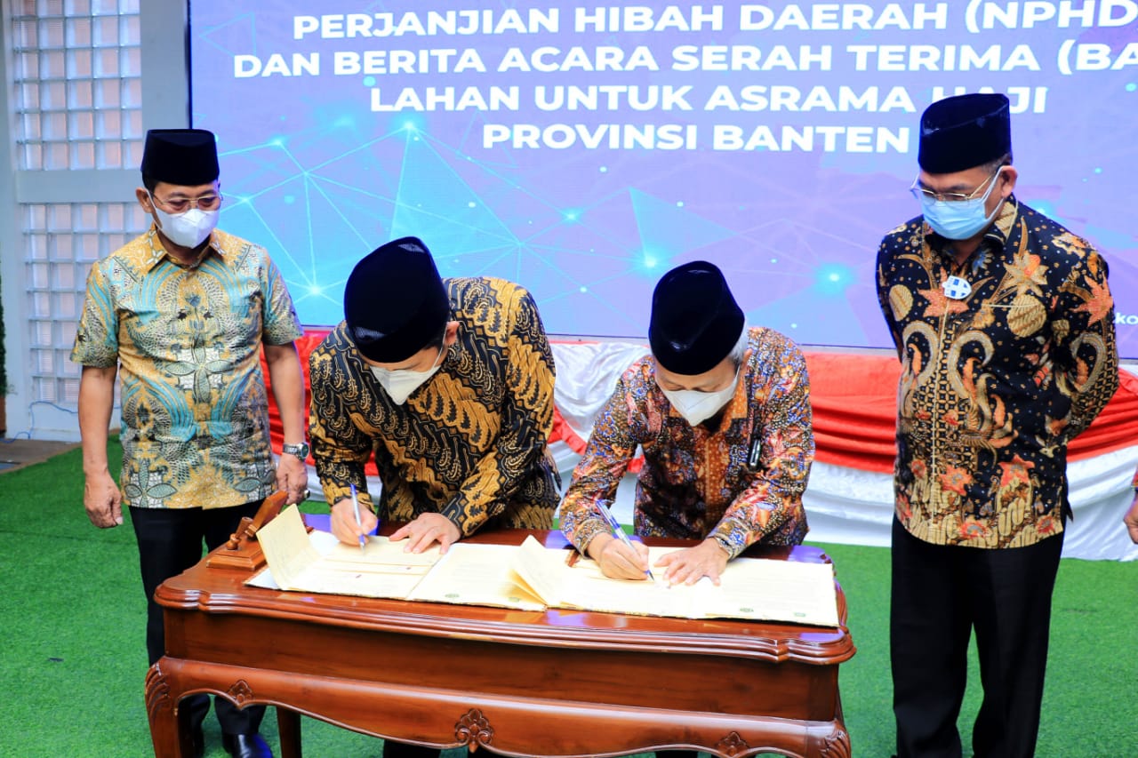 SULUHNEWS.ID, KOTA TANGERANG-Impian masyarakat Provinsi Banten khususnya Kota Tangerang untuk memiliki asrama haji di kota bermoto akhlakul karimah akan segera terwujud, yang ditandai dengan diserahkannya hibah tanah seluas 4,4 Ha oleh Pemkot Tangerang kepada Kementerian Agama.