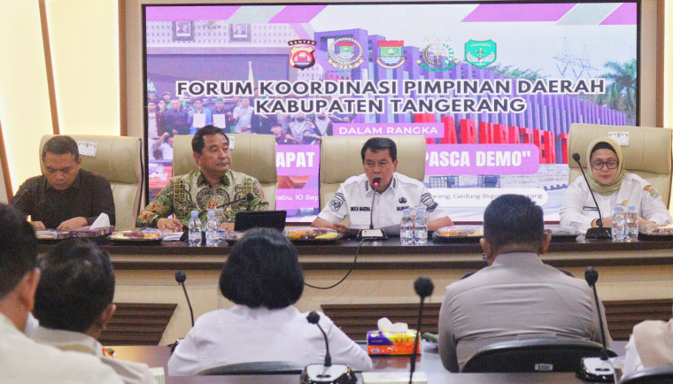 SULUHNEWS.ID, TANGERANG – Pemerintah Kabupaten (Pemkab) Tangerang menggelar rapat koordinasi bersama Forum Koordinasi Pimpinan Daerah (Forkopimda) Kabupaten Tangerang pasca terjadinya aksi demonstrasi di sejumlah wilayah dan perkembangan yang terus berkembang saat ini di Ruang Rapat Wareng, Gedung Bupati Tangerang, Rabu (10/9/2025).