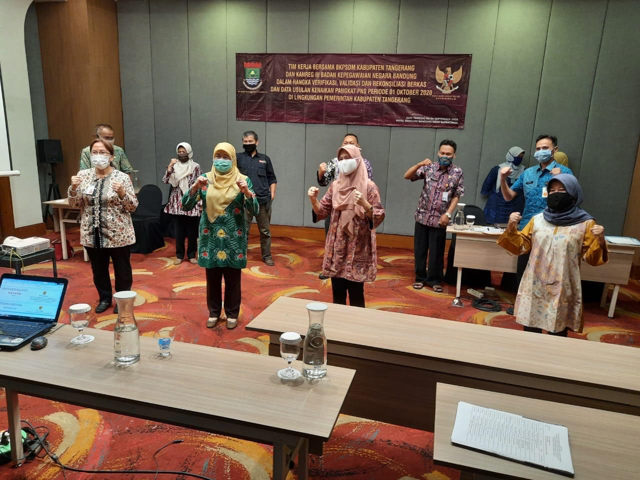 Kepala Badan Kepegawaian dan Pengembangan Sumber Daya Manusia (BKPSDM) Kabupaten Tangerang Hendar Herawan mengatakan saat ini tim BKPSDM sedang verifikasi berkas, validasi dan rekonsiasi berkas dan usulan kenaikan pangkat PNS periode 1 Oktober 2020 do BKN Bandung.