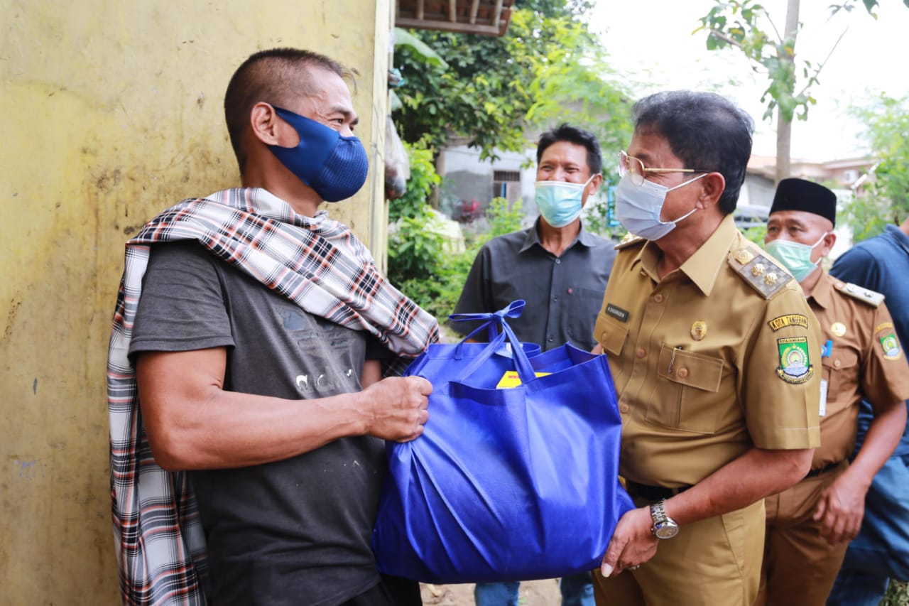 Wakil Wali Kota Tangerang H. Sachrudin menyerahkan langsung bantuan paket sembako kepada sejumlah warga penyandang disabilitas yang tinggal di RW. 02, Kelurahan Nerogtog, Pinang, Senin (1/3).