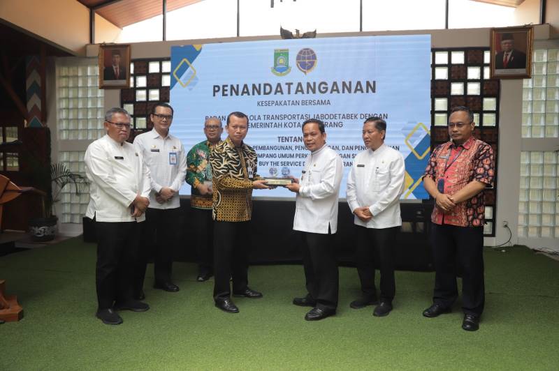 Penandatanganan MoU dilakukan antara Penjabat Wali Kota Tangerang Dr. Nurdin dengan Plt Kepala Badan Pengelolaan Transportasi Jabodetabek Suharto, di Ruang Patio, Puspem Kota Tangerang, Jumat (18/10/24).