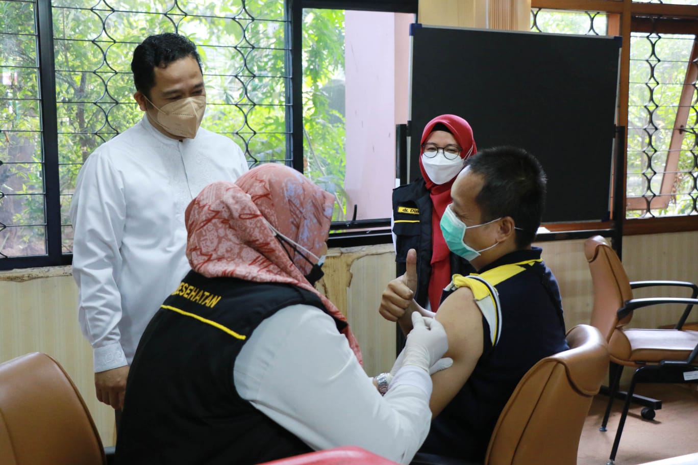 Wali Kota Tangerang H. Arief R. Wismansyah tinjau langsung pelaksanaan vaksinasi dosis ketiga bagi tenaga kesehatan yang berlangsung di Kantor Dinas Kesehatan Kota Tangerang, Sabtu (7/8/21).