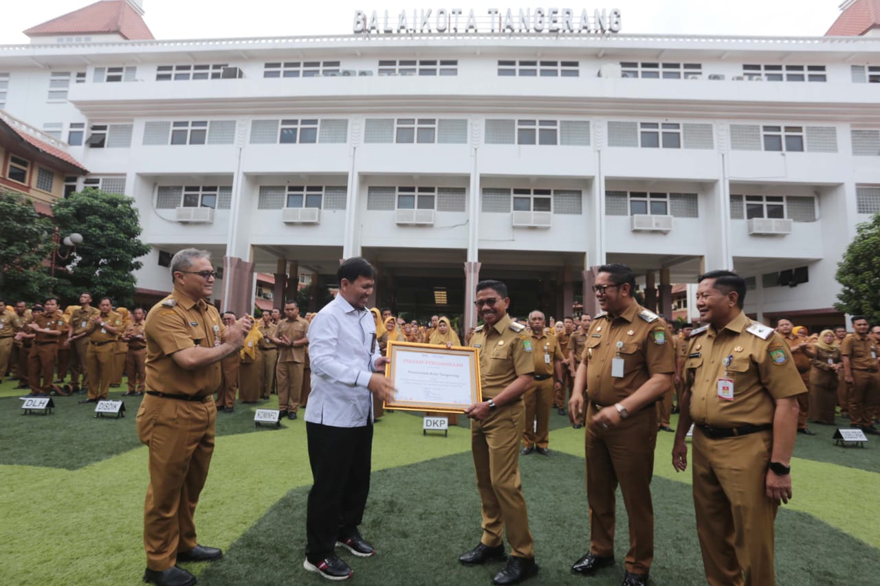 Penghargaan tersebut diserahkan langsung oleh Kasatgas Wilayah II.2 Direktorat Koordinasi dan Supervisi Wilayah II KPK kepada Wali Kota Tangerang H. Sachrudin, pada apel pegawai yang digelar di Pusat Pemerintahan Kota Tangerang, Senin (15/12/2025).