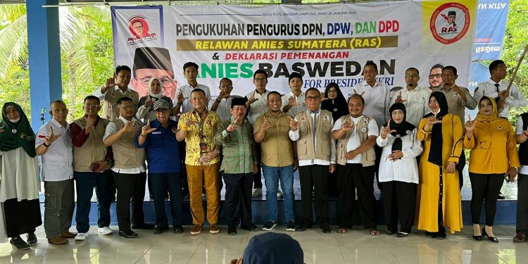 SULUHNEWS.ID, SUMATERA – Meskipun telah lama bergerak di berbagai daerah di Sumatera, Relawan Anies Sumatera atau RAS baru melaksanakan pengukuhan pengurus di Kota Bandar Lampung, Selasa 31 Januari 2023.