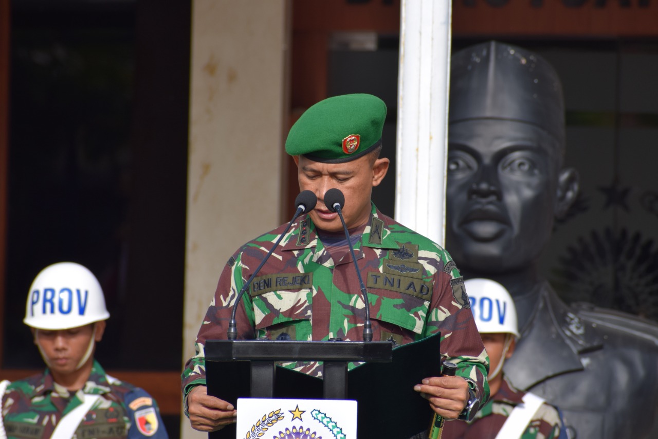 Di awal amanat Pangdam yang dibacakan Inspektur Upacara Kolonel Inf Deni Rejeki menyampaikan ucapan terima kasih dan penghargaan setinggi-tingginya kepada segenap prajurit dan PNS jajaran Kodam V/Brawijaya atas kerja keras, dedikasi serta darma bakti terbaiknya kepada Bangsa dan Negara.